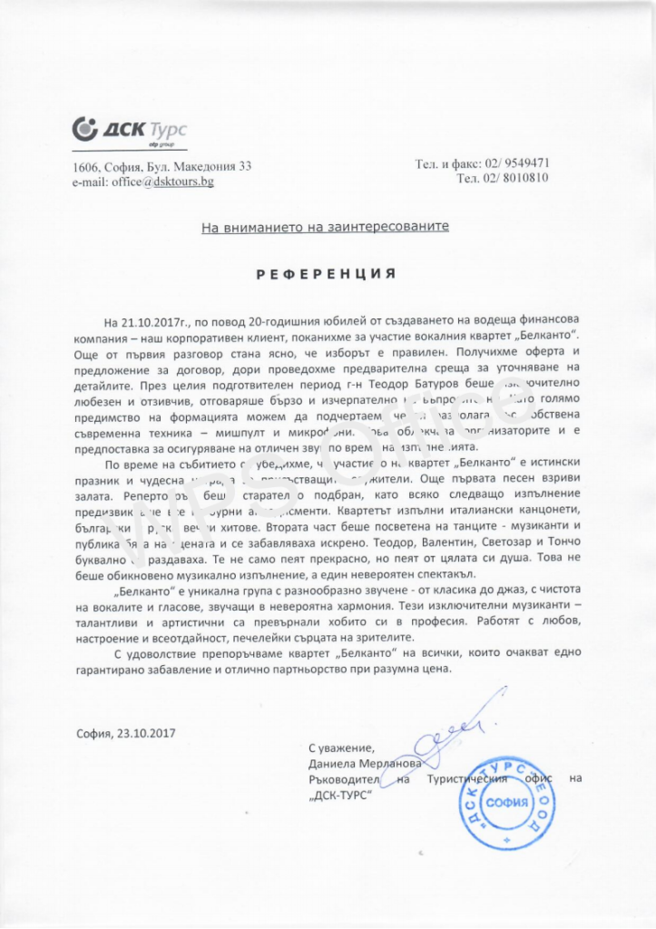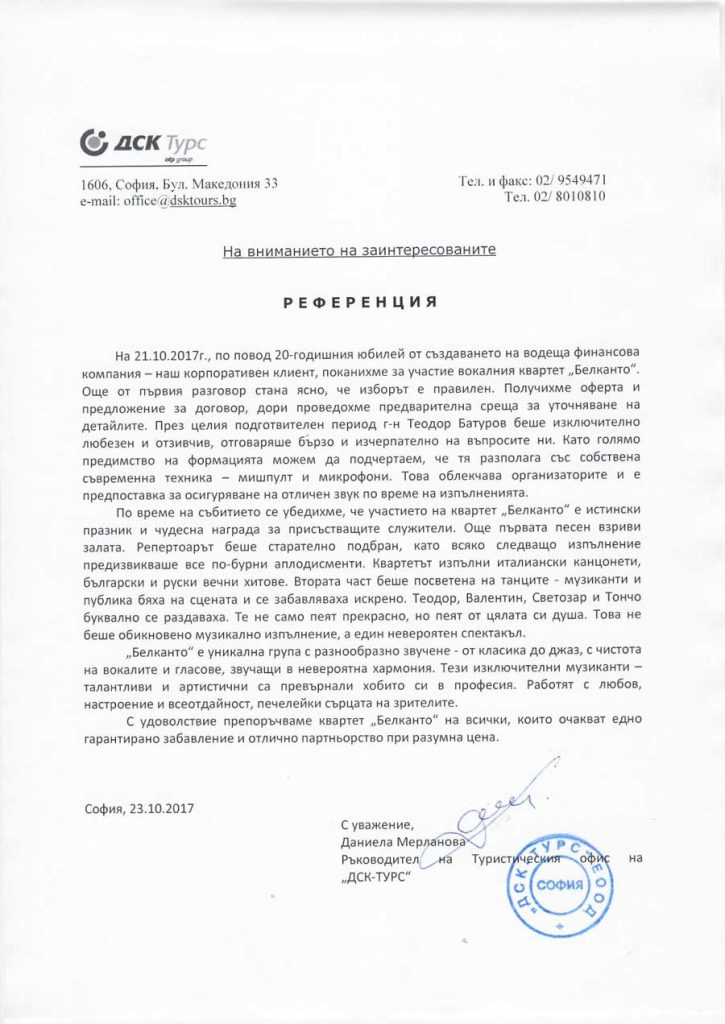 Референция от "ДСК-ТУРС"